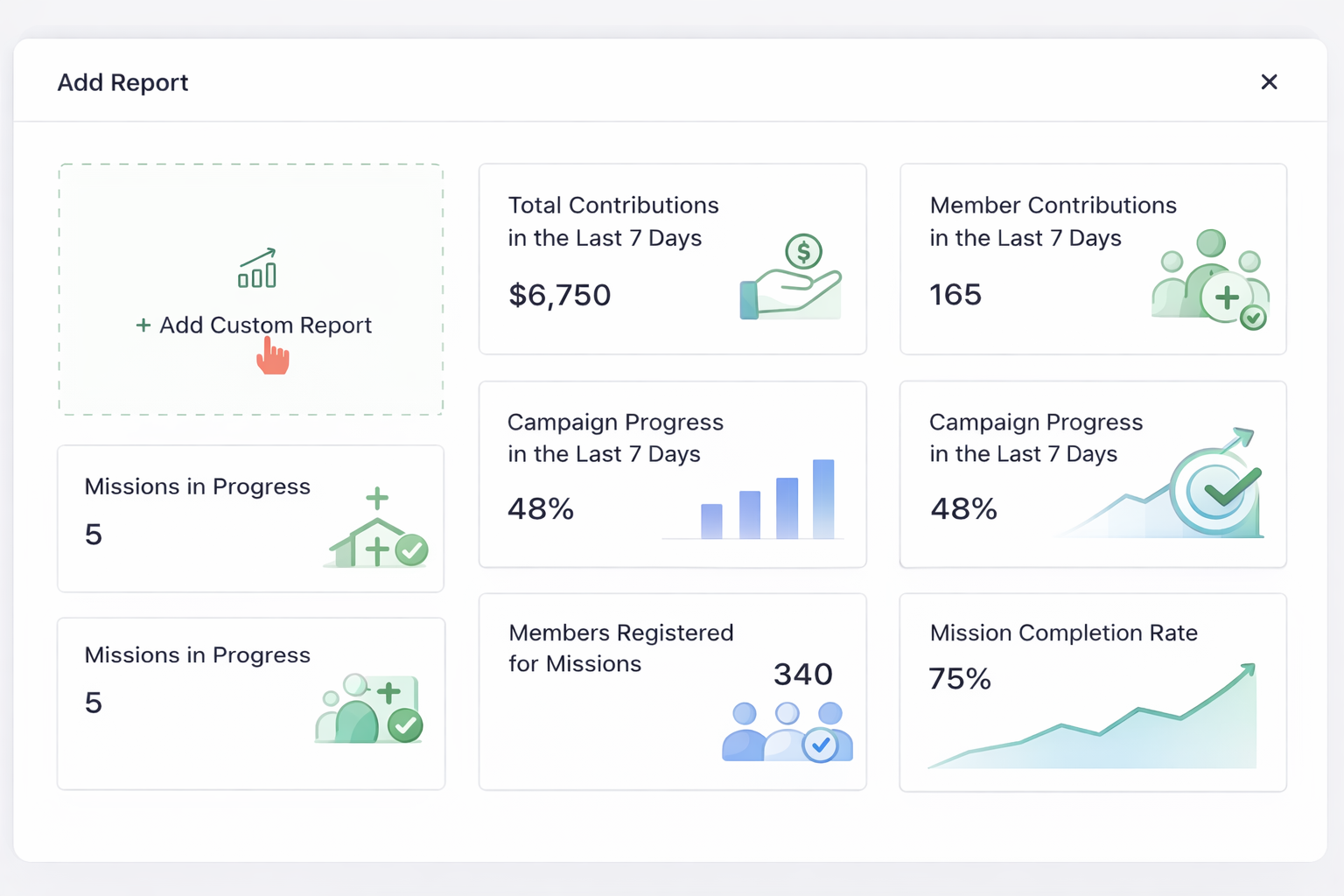 Track contributions and campaign progress in real time so the entire church can see how close the mission is to completion